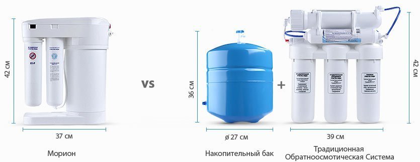 Благодаря эффективности DWM 101 Мориона Вы расходуете до 2 раз меньше воды. В традиционных осмотических фильтрах для получения одного литра чистой воды тратится до 16 литров воды, которая сливается в дренаж. В Аквафор DWM 101 это соотношение удерживается на уровне 1:4.